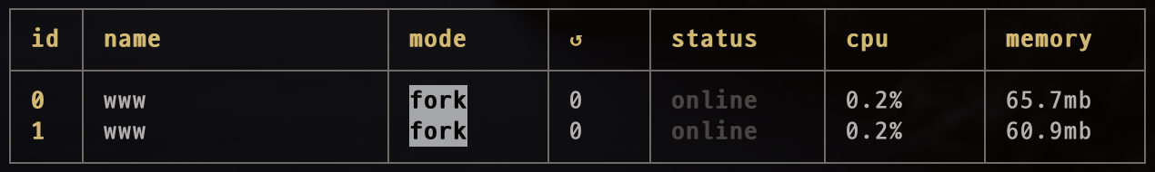pm2를 이용해서 실행중인 서버를 리스트로 확인할 수 있다.