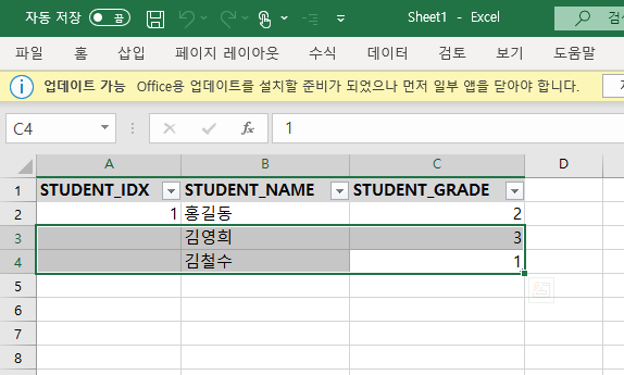 위와 같이 데이터를 엑셀에서 추가했다고 하자