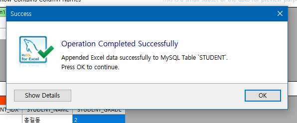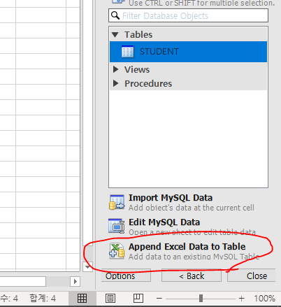 3) 데이터들이 추가된 엑셀파일을 mysql에 export(append)한다